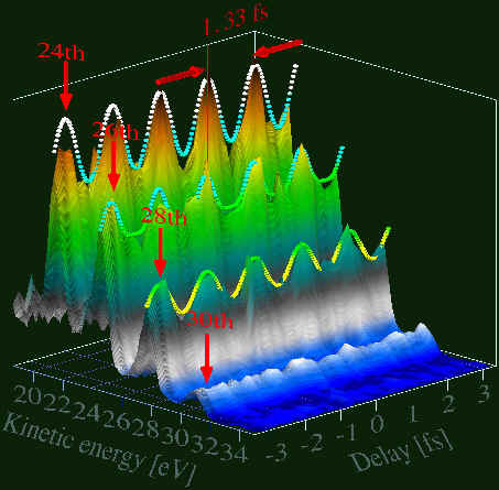 また、コヒーレントな高次高調波の重ね合わせで生成されたアト秒パルストレインは、1.33秒ごとに連なった形で構成され、高強度の高精度超高速シャッターを手に入れることができたことを意味します。従って今後は、可視・赤外レーザー光では観測ができなかった、原子分子の超高速現象を実時間で捉えることが可能になるものと期待されています。