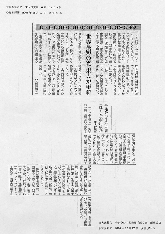 横山啓一先生の研究成果が「超短光パルスレーザーで原子の化学状態制御」として、科学新聞(2006年3月17日)に掲載