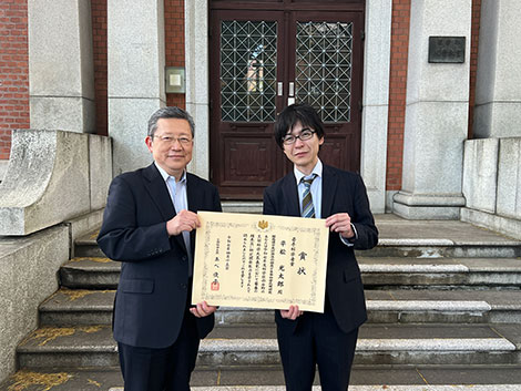 On April 15, Dr. Kotaro Hiramatsu of Department of Chemistry, School of Science, Kyushu University (Professor of the same as of May 1) visited Prof. Yamanouchi. Dr. Hiramatsu is a graduate of Department of Chemistry, School of Science, The University of Tokyo and was recently awarded The Young Scientistsf Award, the Commendation for Science and Technology by the Minister of Education, Culture, Sports, Science and Technology (MEXT).